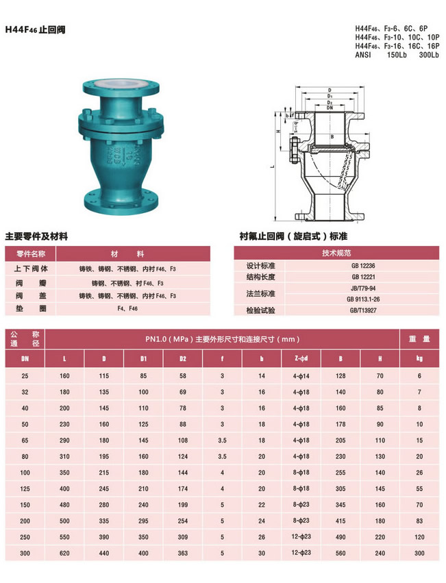 名稱:H44F4-10C旋啟式止回